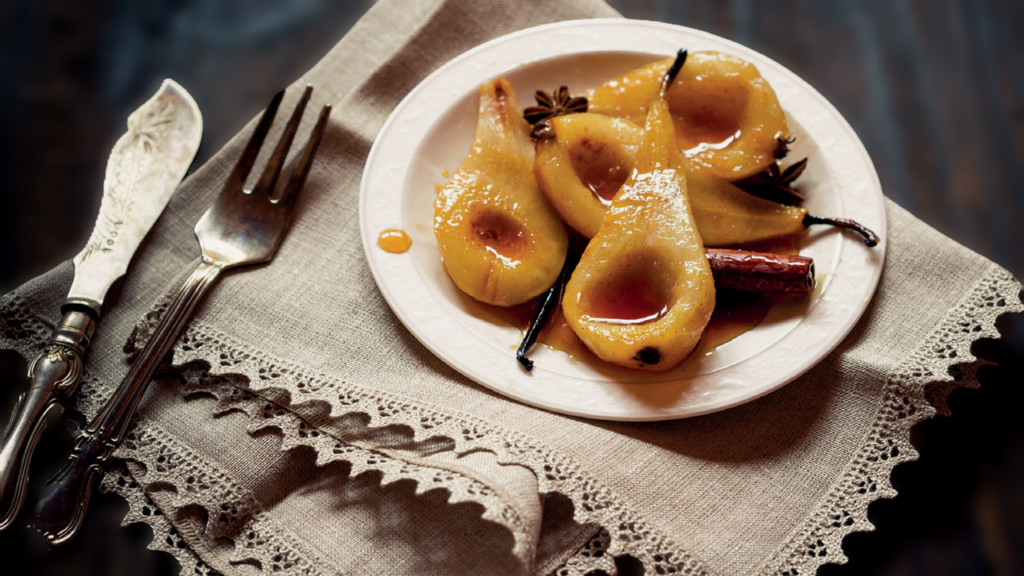 Réduisez le feu, couvrez et laissez mijoter doucement jusqu’à ce que les poires soient tendres.